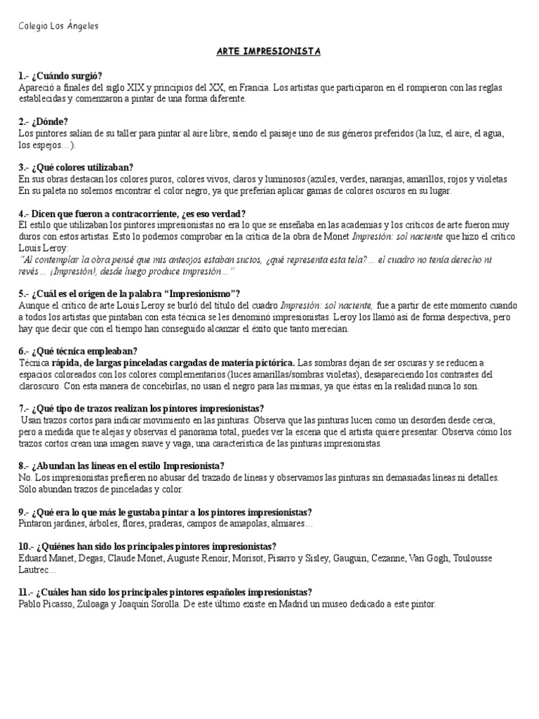 5A IMPRESIONISMO CUESTIONARIO | Impresionismo | Pinturas
